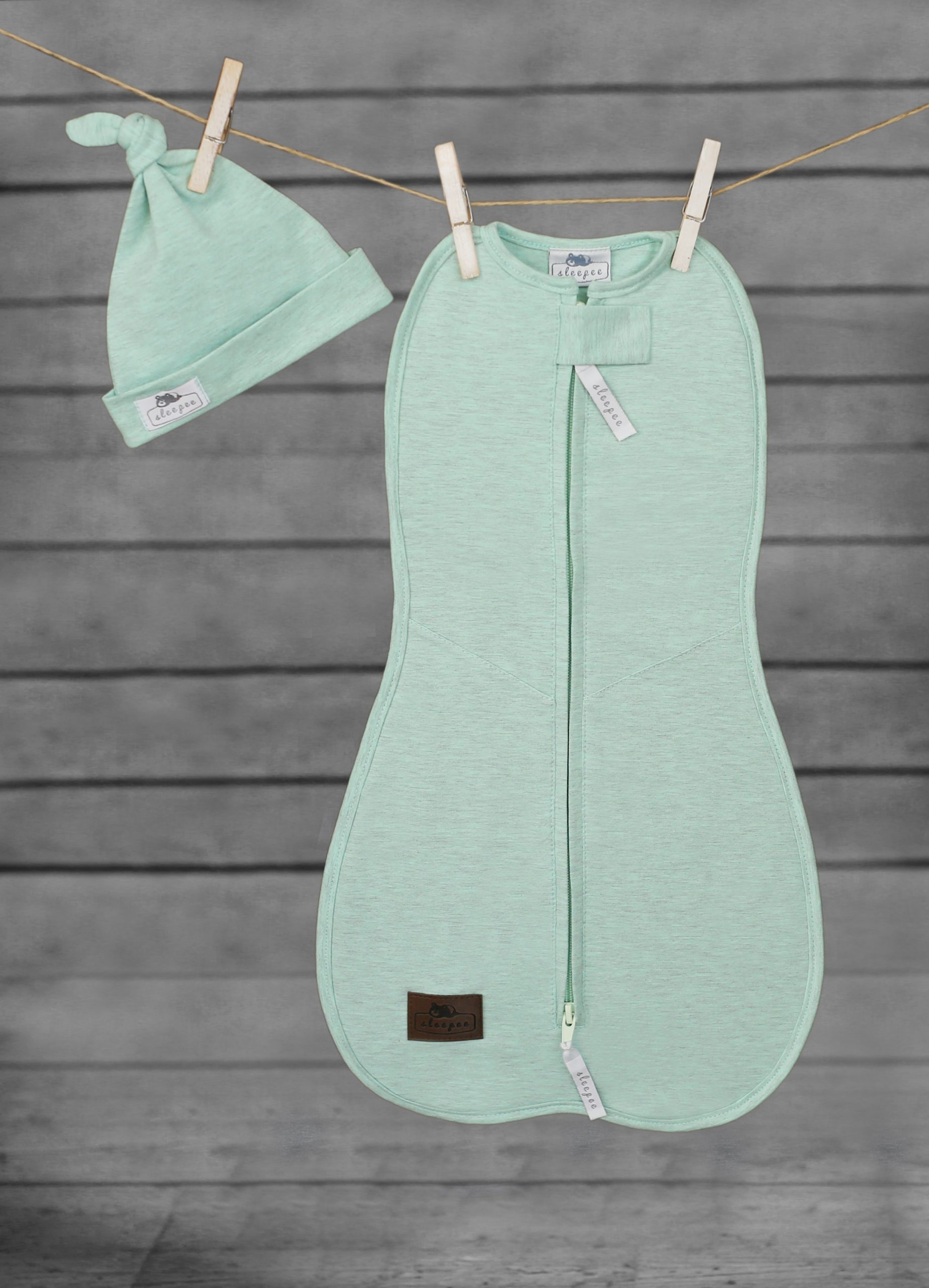 Saculet Swaddle infasat Nou Nascut Bumbac + Caciulita – First Step Menta 0.2 Tog Sleepee