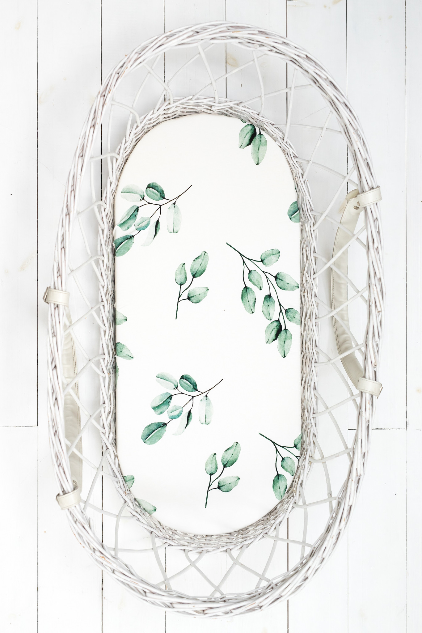 Set 2 cearsaf cu elastic pentru landou/ cosulet bebe Bumbac – Eucalipt/Puncte Sleepee